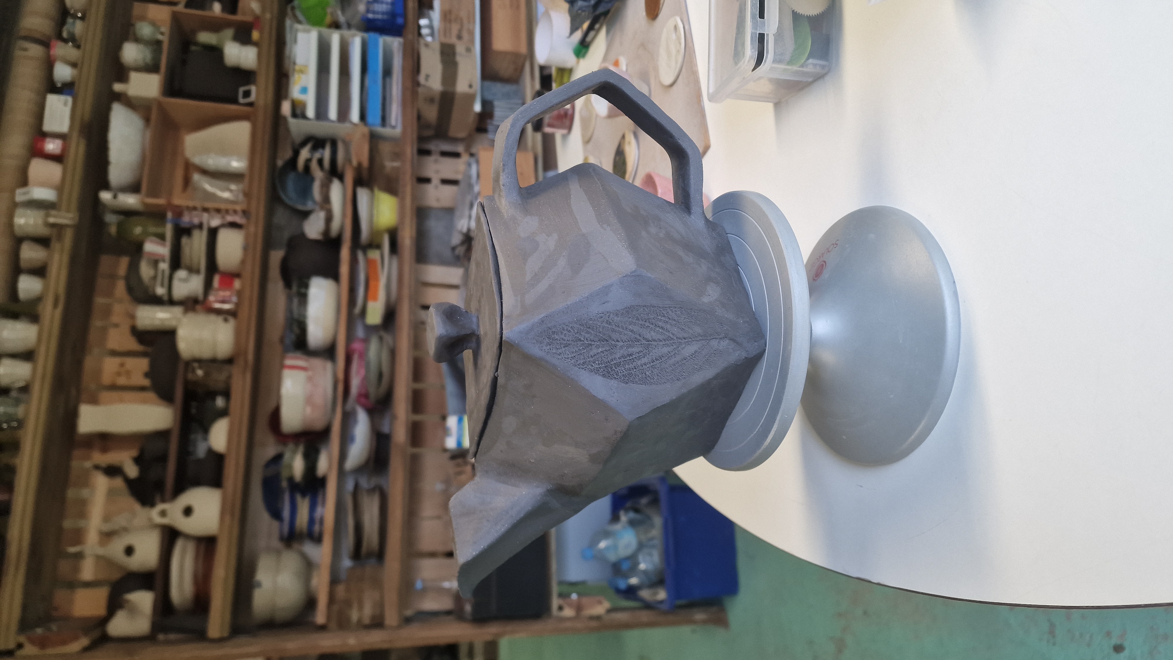 Praktika peamine teos: teekann kohalikust peene šamotiga Saint-Amande savist — iseseisev töö, ilma juhendajata.